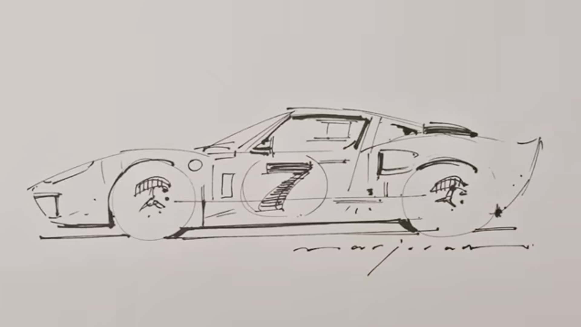 Останній урок Марджорама присвячений одному з найвідоміших силуетів в історії автоспорту – Ford GT40. Замість того щоб відразу братися за складні вигини кузова, його метод наголошує на логічний, структурний підхід до начерку.