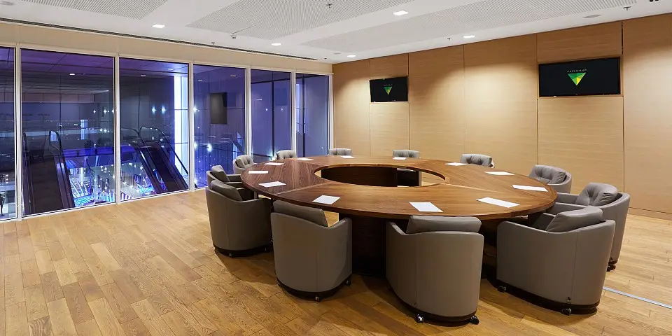 Размер конференц-комнаты должен соответствовать числу участников. Тесное помещение создаст дискомфорт, а слишком просторный зал может снизить ощущение уюта и взаимодействия. Рассчитайте, сколько человек будет присутствовать, и добавьте 10–20% свободного пространства для удобства.
